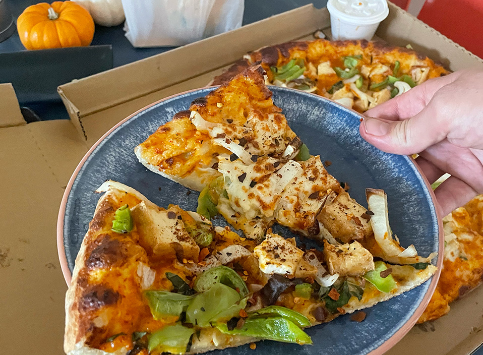 Look closely at that pizza, dear indulgent reader. What do you see? (Nevermind the decorative squash in the corner) This is the Thai Curry Tofu Pizza from Thai Curry Pizza & Thai Food in Long Beach of course. It has Thai curry sauce and is topped with basil, onion and bell pepper. You can get it with tofu or chicken. Pro-tip: Ask for a side of the sauce to dip it in. I don’t know how you define self-care, but this Thai pie is my ultimate comfort.