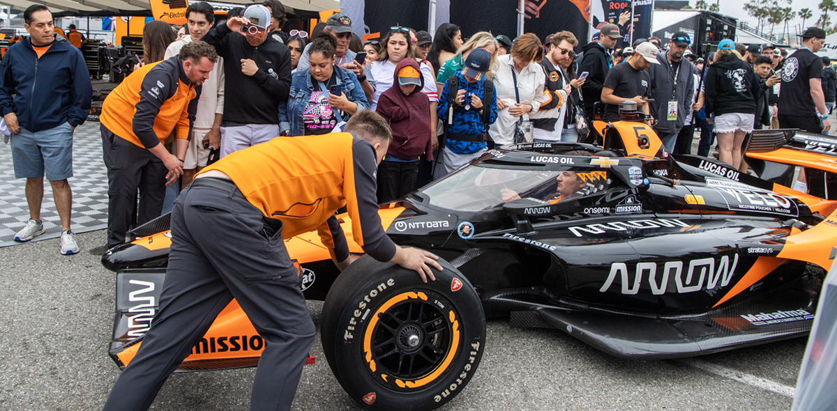 IndyCar race fans watch the 50th Acura Grand Prix from a condo balcony overlooking the race track in Long Beach on Sunday, April 13, 2025. Photo by Thomas R. Cordova.Aston Martin THOR teammates Roman De Angelis and Ross Gunn co-pilot the Ashton Martin Valkyrie during the IMSA SportsCar Grand Prix. De Angelis placed eighth on April 14, 2025, during the 50th Acura Grand Prix of Long Beach. Photo by Samuel Chacko.A woman shelters from the sun under an umbrella while watching the 50th Acura Grand Prix of Long Beach on Sunday, April 13, 2025. Photo by Thomas R. Cordova.Fans hung up popular sponsors and racing flags to show support for the 50th Acura Grand Prix of Long Beach on April 11, 2025. Photo by Samuel ChackoFans lounge on the lawn as they watch passing cars along the straightaway at the 50th Acura Grand Prix of Long Beach on Sunday, April 14, 2025. Photo by John Donegan.IndyCar fans stand at the fence line watching the 50th Acura Grand Prix of Long Beach on Sunday, April 13, 2025. Photo by Thomas R. Cordova.Porsche Penske Motorsport drivers Felipe Nasr and Nick Tandy practiced during IMSA practice No. 1 at the 50th Acura Grand Prix of Long Beach on April 11, 2025. Photo by Samuel Chacko.Two F-18s performed a flyover during the National Anthem at the 50th Acura Grand Prix of Long Beach on Sunday, April 13, 2025. Photo by Thomas R. Cordova.The first round of Super Drift Challenge No. 2 commences on April 12, 2025, with the bleachers and front-row seats filled during the 50th Acura Grand Prix of Long Beach on April 13, 2025. Photo by Samuel Chacko.A Firestone employee changes race tires while preparing for the 50th Acura Grand Prix of Long Beach in Long Beach on Sunday, April 13, 2025. Photo by Thomas R. Cordova.IndyCar driver Kyle Kirkwood speaks to FOX 11 among multiple media outlets for interviews after his first-place finish at the 50th Acura Grand Prix of Long Beach on Sunday, April 13, 2025. Photo by Samuel Chacko.The pit crew for Pato O’Ward rolls out his IndyCar for the start of the 50th Acura Grand Prix of Long Beach on Sunday, April 13, 2025. Photo by Thomas R. Cordova.Azucena Cruz, of Kansas, a fan of Pato O’Ward, wears her hat dedicated to the driver as she attends the 50th Acura Grand Prix of Long Beach on Sunday, April 13, 2025. Photo by Thomas R. Cordova.IndyCar driver Devlin DeFrancesco navigates around the water fountain during the 50th Acura Grand Prix of Long Beach on Sunday, April 13, 2025. Photo by Thomas R. Cordova.An IndyCar streams across the track under the shade of palms. Photo by John Donegan.IndyCar driver Josef Newgarden whips his white and red car around the hairpin turn during the first few laps of the Acura Grand Prix of Long Beach on Sunday, April 14, 2025. Photo by John Donegan.An IndyCar fan records the race from behind a blocked fence at the 50th Acura Grand Prix of Long Beach on Sunday, April 13, 2025. Photo by Thomas R. Cordova.A fan takes advantage of a break between group photos to pose for a selfie in front of the winning IndyCar during Sunday’s winners’ ceremony. Photo by John Donegan.