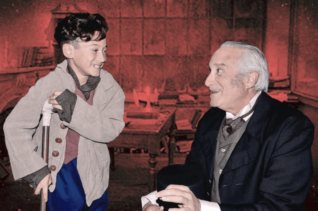 Preview photo of “A Christmas Carol” at Long Beach Playhouse. From left: Dash Gomer (Tiny Tim) and Gregory Cohen (Ebenezer Scrooge). Photo courtesy of the theater.