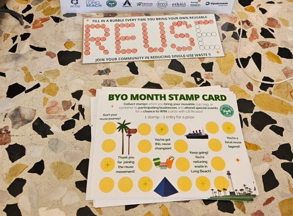 More broadly, the coalition is trying to track numbers across Long Beach by giving participating businesses stamp cards for customers to earn prizes and small bubble sheets to be marked each time someone brings their own reusable item.