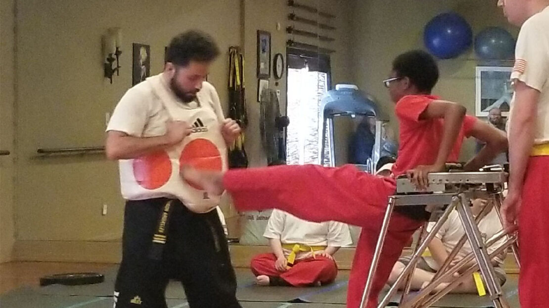 He earned a yellow belt in taekwondo while using the walker to support his kicks during training, Terri said.