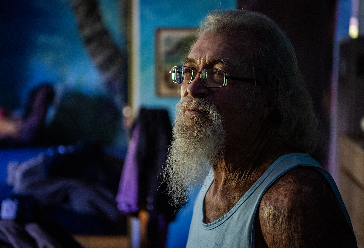 As he sits on the couch in the home he’ll soon have to leave, sunlight shows the scars lining the crown of his shoulders. His newest bird, a Senegal parrot, chirps for feeding time from the kitchen while his Newfoundland pup — about 3 years old and weighing easily 100 pounds — looks in from the backyard waiting for their afternoon walk.