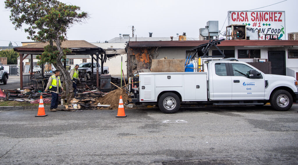 A neighbor took and shared with them a photo that showed the back half of the restaurant engulfed in flames, Aguirre said.