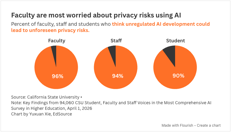 Nearly every student in the California State University system has used artificial intelligence tools, but most don’t trust the results, are worried about how AI will affect their future job security and want more say in systemwide AI policy.