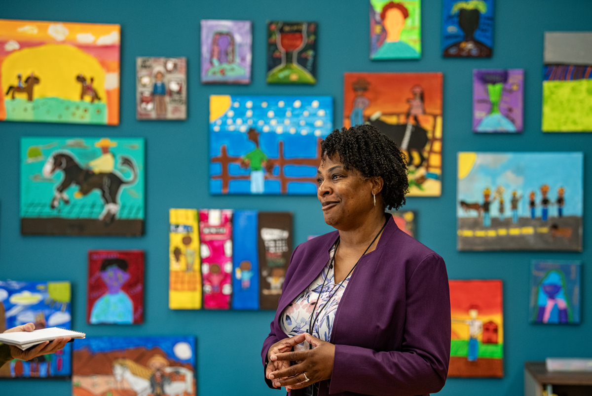 Brown said that through listening sessions, “300 people — families, staff members, students — really framed the creation of the space,” which is filled with art and literature celebrating the richness of Black history and creativity.