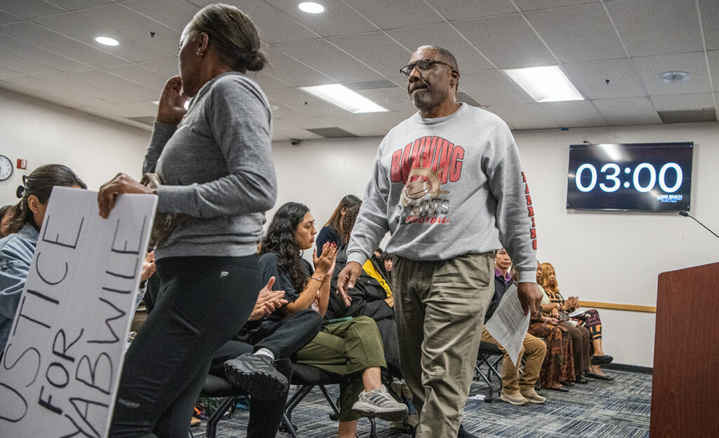 Many who took the lectern were prompted by two recent events: the removal of a Black counselor from Lakewood High School and a text message showing a Black child in an ankle monitor allegedly sent by a MacArthur Elementary teacher. These incidents elicited frustration, sadness and calls for action from members of the public, many of whom told school leaders they’re reflective of deeper issues harming Black LBUSD students.