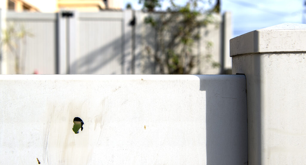 A bullet from the shooting left a hole in the white perimeter fence of a house on the usually quiet street.