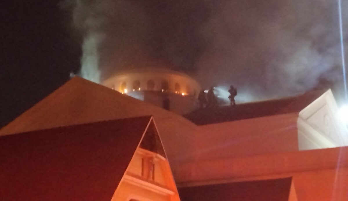 Video and photos from the scene showed smoke and flames coming from the roof of the church.