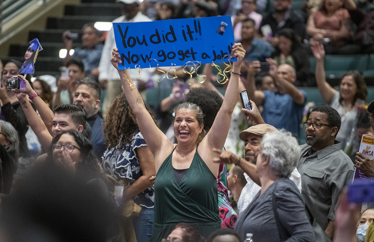 Supporters of a graduate wave and cheer at Renaissance High School for the Arts’ class of 2023 commencement ceremony in Long Beach, Thursday, June 15, 2023. Photo by Thomas R. Cordova.A family member holds up a sign in support of their graduate of Renaissance High School for the Arts’ class of 2023 commencement ceremony in Long Beach, Thursday, June 15, 2023. Photo by Thomas R. Cordova.The National Anthem is sung by Reina Tobler and Blessel Cabellero during the Renaissance High School for the Arts’ class of 2023 commencement ceremony in Long Beach, Thursday, June 15, 2023. Photo by Thomas R. Cordova.At Renaissance High School for the Arts, the principal’s message goes into song with the support of the school’s staff during the commencement ceremony in Long Beach, Thursday, June 15, 2023. Photo by Thomas R. Cordova.At Renaissance High School for the Arts, the principal’s message goes into song with the support of the school’s staff during the commencement ceremony in Long Beach, Thursday, June 15, 2023. Photo by Thomas R. Cordova.At Renaissance High School for the Arts, the principal’s message goes into song with the support of the school’s staff during the commencement ceremony in Long Beach, Thursday, June 15, 2023. Photo by Thomas R. Cordova.Graduates perform during Renaissance High School for the Arts’ commencement ceremony in Long Beach, Thursday June 15, 2023. Photo by Thomas R. Cordova.Kaitlin Kitchens sings in the senior tribute performance during the Renaissance High School for the Arts’ class of 2023 commencement ceremony in Long Beach, Thursday, June 15, 2023. Photo by Thomas R. Cordova.Dancers take the stage as they perform during the senior tribute performance at the Renaissance High School for the Arts’ class of 2023 commencement ceremony in Long Beach, Thursday, June 15, 2023. Photo by Thomas R. Cordova.King Caleb Chaney performs in the senior tribute performance during the Renaissance High School for the Arts’ class of 2023 commencement ceremony in Long Beach, Thursday, June 15, 2023. Photo by Thomas R. Cordova.King Caleb Chaney performs in the senior tribute performance during the Renaissance High School for the Arts’ class of 2023 commencement ceremony in Long Beach, Thursday, June 15, 2023. Photo by Thomas R. Cordova.Leilani Davis is the “GOAT” as she holds her graduation cap next to Principal Michael Navia during the Renaissance High School for the Arts’ class of 2023 commencement ceremony in Long Beach, Thursday, June 15, 2023. Photo by Thomas R. Cordova.The tongue comes out as Beau Esparza takes a photo with Principal Michael Navia during the Renaissance High School for the Arts’ class of 2023 commencement ceremony in Long Beach, Thursday, June 15, 2023. Photo by Thomas R. Cordova.Alexis Murphy celebrates after receiving her diploma during the Renaissance High School for the Arts’ class of 2023 commencement ceremony in Long Beach, Thursday, June 15, 2023. Photo by Thomas R. Cordova.Matthew Taylor shows his medals as he celebrates after receiving his diploma during the Renaissance High School for the Arts’ class of 2023 commencement ceremony in Long Beach, Thursday, June 15, 2023. Photo by Thomas R. Cordova.Members of the Renaissance High School for the Arts’ class of 2023 hold their diplomas up high during the commencement ceremony in Long Beach, Thursday, June 15, 2023. Photo by Thomas R. Cordova.Dae Theus adjusts her graduation cap before the Renaissance High School for the Arts’ class of 2023 commencement ceremony in Long Beach, Thursday, June 15, 2023. Photo by Thomas R. Cordova.Diana Reyes waits patiently in line before the Renaissance High School for the Arts’ class of 2023 commencement ceremony in Long Beach, Thursday, June 15, 2023. Photo by Thomas R. Cordova.LBUSD Superintendent Jill Baker chats with Diana Reyes before the Renaissance High School for the Arts’ class of 2023 commencement ceremony in Long Beach, Thursday, June 15, 2023. Photo by Thomas R. Cordova.King Caleb Chaney and Principal Michael Navia practice a celebration move before the Renaissance High School for the Arts’ class of 2023 commencement ceremony in Long Beach, Thursday, June 15, 2023. Photo by Thomas R. Cordova.The Renaissance High School for the Arts’ class of 2023 commencement ceremony in Long Beach, Thursday, June 15, 2023. Photo by Thomas R. Cordova.Dresden Bbabcock, left and Paloma Encarnacion share a kiss in celebration after the Renaissance High School for the Arts’ class of 2023 commencement ceremony in Long Beach, Thursday, June 15, 2023. Photo by Thomas R. Cordova.