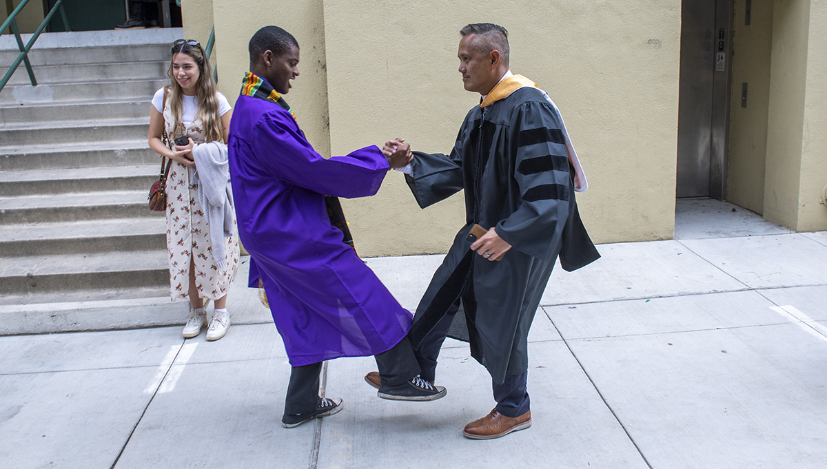Xavier Lyons and Aniyah Reed celebrate after the Renaissance High School for the Arts' class of 2023 commencement ceremony in Long Beach, Thursday, June 15, 2023. Photo by Thomas R. Cordova.