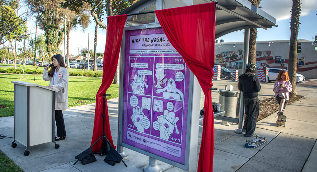 On Wednesday, the city of Long Beach unveiled nearly 20 new bus shelter ads, featuring student artwork that details the steps to reverse an opioid overdose.