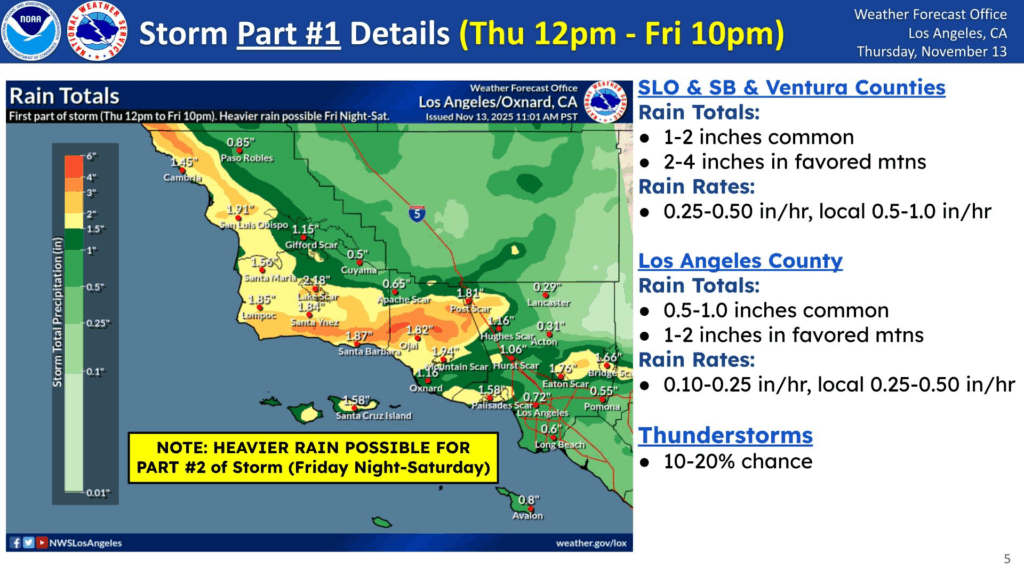 Light drizzle in Long Beach had brought slightly more than a tenth of an inch of rain by early Friday afternoon, but it’s just the beginning.
