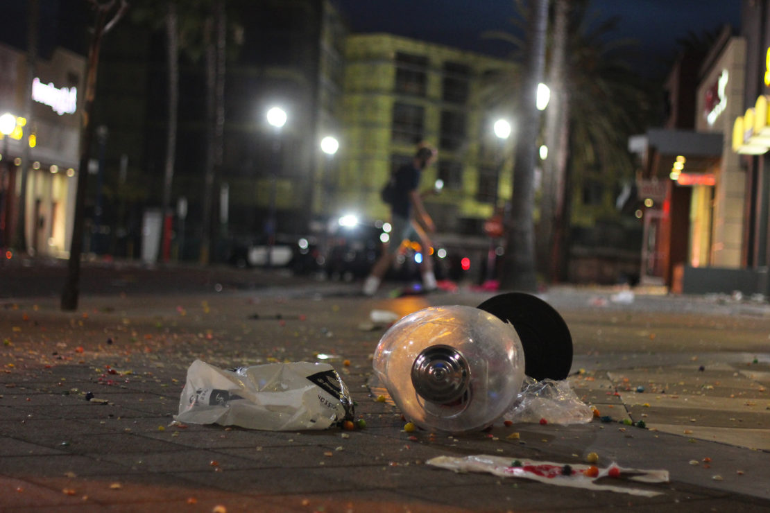 A woman and other protesters stand the line on Ocean Blvd. during a protest of the death of George Floyd. Long Beach Sunday, May 31, 2020. Photo by Thomas R. Cordova.A looter at The Pike Outlets. Photo by Stephen Carr.Two women take cover as police shoot less-lethal rounds at them. Long Beach Sunday, May 31, 2020. Photo by Thomas R. Cordova.Looters run out of a Walgreens on Long Beach Boulevard. Long Beach Sunday, May 31, 2020. Photo by Thomas R. Cordova.A man raises his hands in front of the police line on Ocean Blvd. during a protest of the death of George Floyd. Photo by Thomas R. Cordova.Long Beach police direct a man to leave on Ocean Blvd. The man was later shot by a less-lethal round. Photo by Thomas R. Cordova.Long Beach police shoot less-lethal rounds at a protester on Ocean Blvd. Photo by Thomas R. Cordova.A man lies on the ground after being hit by a less-lethal weapon while protesting at Ocean Blvd. Photo by Thomas R. Cordova.A demonstrator shows his wound after being hit by a less-lethal weapon while protesting on Ocean Blvd. Photo by Thomas R. Cordova.Long Beach police hold their line at the Promenade during a protest of the death of George Floyd. Photo by Thomas R. Cordova.Two people shot with rubber bullets by police receive first aid from other protestors on Ocean Boulevard in Downtown Long Beach. Photo by Brandon RIchardson.Protestors faced off with police at The Pike in Downtown Long Beach, arms raised. Photo by Brandon Richardson.A firework shoots off as demonstrators run at Pine Avenue and Broadway. Photo by Thomas R. Cordova.A protester stands in front of the Long Beach police line at Pine Avenue and Broadway. Photo by Thomas R. Cordova.A Long Beach police officer trains his less-lethal weapon at the crowd at Pine Avenue and Broadway. Photo by Thomas R. Cordova.A demonstrator throws a water bottle at a Long Beach police as it comes through the crowd during protest. Photo by Thomas R. Cordova.People loot Hot Topic at The Pike in Downtown Long Beach. Photo by Brandon RIchardson.Looters ransack the Express Factory Outlet at The Pike in Downtown Long Beach. Photo by Brandon Richardson.Protestors turned to looting at The Pike in Downtown Long Beach. Photo by Brandon RIchardson.Photo by Kelly PuenteProtestors protect Nike store in the Pike Outlets after looters attempted to enter it. Photo by Kelly Puente.Protesters confront LBPD, at Pine Avenue, as they protest police brutality, sparked by the recent death of George Floyd, by Minnesota police officer Derek Chauvin. Photo by Stephen Carr.Police form a line blocking access to Pine Avenue from Ocean Boulevard in Downtown Long Beach. Photo by Brandon Richardson.Officers march toward protestors at The Pike in Downtown Long Beach, Sunday. Photo by Brandon Richardson.Police officers found themselves surround by protestors at The Pike in Downtown Long Beach. Photo by Brandon Richardson.Protesters face off with police at The Pike in Downtown Long Beach, while others loot nearby stores. Photo by Brandon Richardson.Officers faceoff with peaceful protestors while looters plunder stores at The Pike in Downtown Long Beach. Photo by Brandon Richardson.Looters smashed the door of the Express Factory Outlet at The Pike in Downtown Long Beach. Photo by Brandon Richardson.The aftermath of looting on 5th Street at The Streets in Downtown Long Beach. Photo by Brandon Richardson.Protestors keep their hands in the air minutes before police began firing rubber bullets into the crowd in Downtown Long Beach. Photo by Brandon Richardson.A protestor holds their skateboard over their head as a police line advances in Downtown Long Beach. Photo by Brandon Richardson.A bubblegum machine lays smashed, its contents littering the sidewalk, after looting on 5th Street at The Streets in Downtown Long Beach. Photo by Brandon Richardson.Looters destroy product cases inside a Walgreens in Downtown Long Beach. Photo by Brandon Richardson.A protesters spins his tires along Pine Avenue, as people protest police brutality, sparked by the recent death of George Floyd. Photo by Stephen Carr.Protesters ride in a classic car along Pine Avenue, as they protest police brutality. Photo by Stephen Carr.Protesters confront LBPD, at Pine Avenue, as they protest police brutality. Photo by Stephen Carr.A man sprays graffiti along Pine Ave., as protesters gathered in Downtown Long Beach, protesting police brutality. Photo by Stephen Carr.Looters at The Pike Outlets. Photo by Stephen Carr.Looters at The Pike Outlets. Photo by Stephen Carr.A looter kicks in the window at Express Factory Outlet. Photo by Stephen Carr.Looters at Express Factory Outlet. Photo by Stephen Carr.Looters at The Pike Outlets. Photo by Stephen Carr.Looters at The Pike Outlets. Photo by Stephen Carr.A looter smashes a window with his skateboard, at Forever 21, at The Pike Outlets. Photo by Stephen Carr.Protesters and LBPD at The Pike Outlets. Photo by Stephen Carr.A man smashes the window of an LBPD cruiser with a hammer, at The Pike Outlets. Photo by Stephen Carr.Looters on Pine Ave. Photo by Stephen Carr.LBPD points a gun with rubber bullets at protesters on Pine Ave. Photo by Stephen Carr.Looters exit King’s Fish House on Pine Ave. Photo by Stephen Carr.A man documents protesters on Pine Ave., in Downtown Long Beach. Photo by Stephen Carr.Protesters tip over a burning refrigerator. Photo by Stephen Carr.Protesters tip over a burning refrigerator. Photo by Stephen Carr.Smokes rise from a clothing store that caught fire at the corner of 7th Street and Pine Ave. Photo by Stephen Carr.Two looters, one being treated for dog bites, are taken into custody at a shoe store at 2541 East Anaheim Street. Photo by Stephen Carr.Two protestors hold their hands up as they back away from an advancing police line in Downtown Long Beach, Sunday, May 31, 2020. Photo by Brandon Richardson.