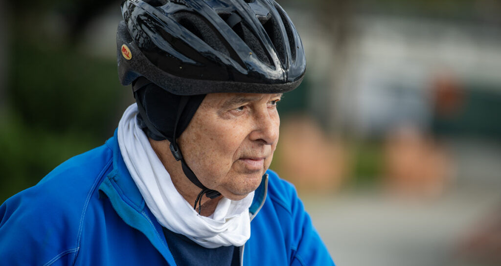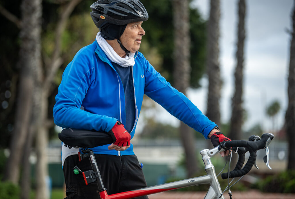 One November morning, Rand wheeled his lightweight bicycle (“just a feather,” he said) from his home in Belmont Park to the water and carefully mounted, using a curb for assistance, as his doctor instructed. He looped around the parking lot, youthful and almost giddy as he blew past a couple waterfowl in Alamitos Bay. Then he rounded a corner and briefly disappeared from view, emerging again to dismount, beaming.