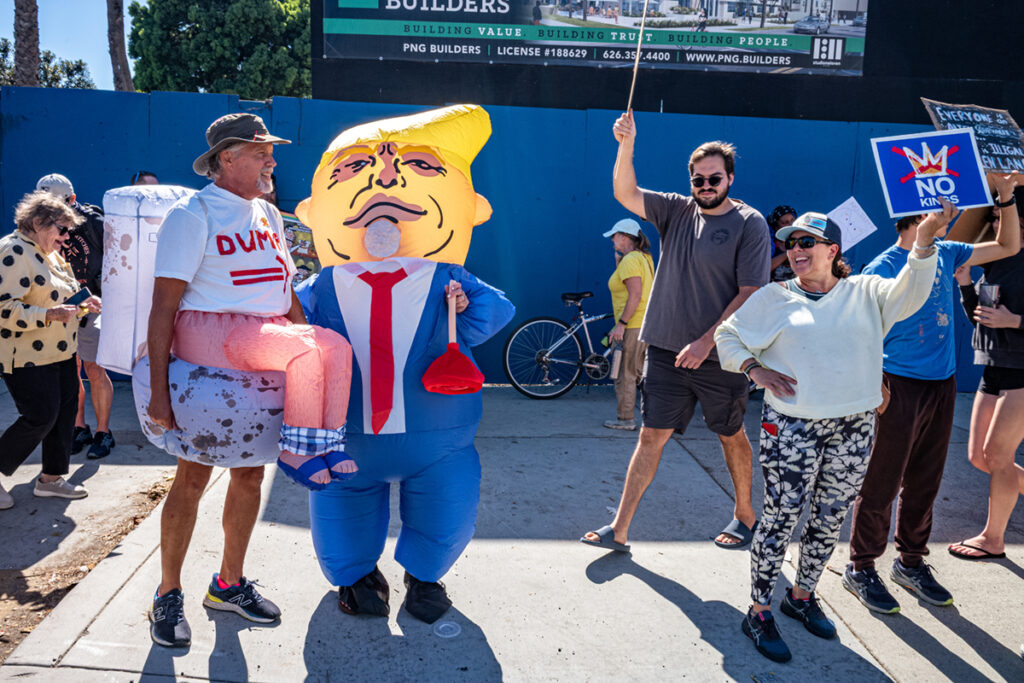 Crowds poured onto the streets of Long Beach Saturday to participate in the nationwide No Kings Day demonstration opposing the Trump administration.