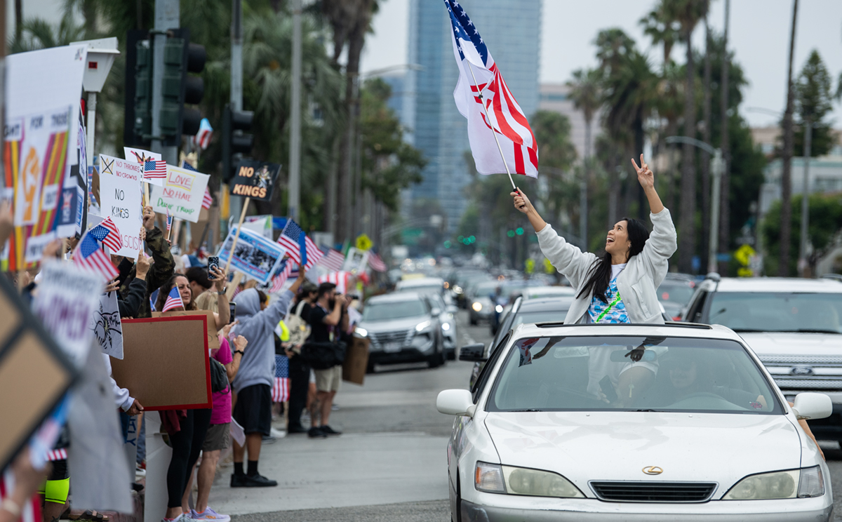 It’s the second day of action organized by a coalition including a group that calls itself 50501, which stands for 50 states, 50 protests, one movement. The first took place in June and brought thousands of people to the streets of Long Beach, Los Angeles County and in all 50 states.