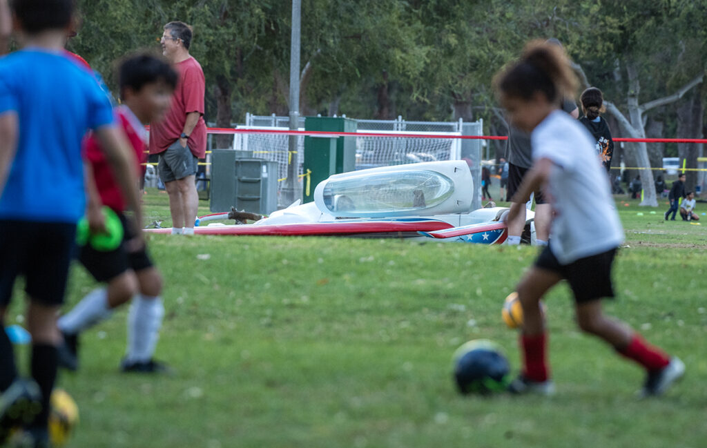 Firefighters responded to a soccer field at the park at about 4 p.m. after they were notified of the crash near Carson Street just east of Woodruff Avenue, said Long Beach Fire Department Capt. Jack Crabtree.