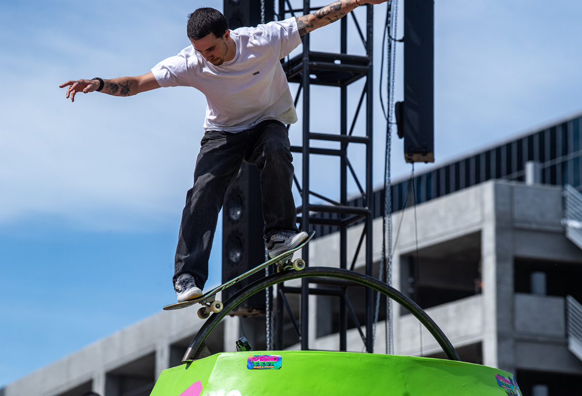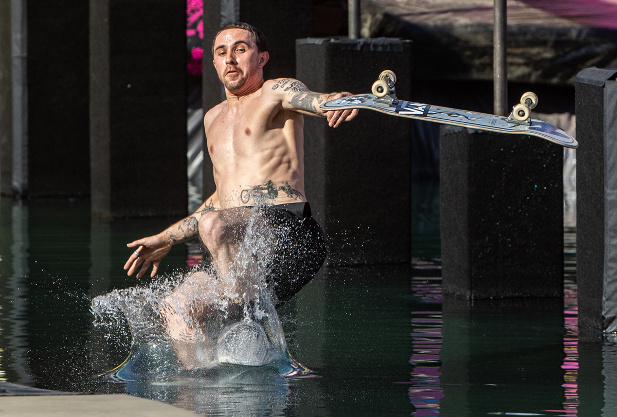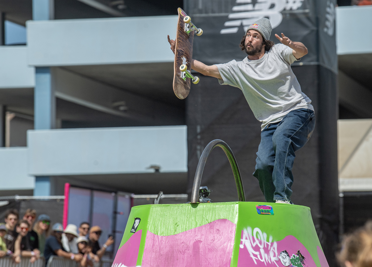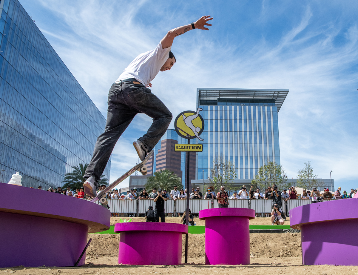 Some of the best skaters in the world are in Long Beach this week, taking on a series of intense, brightly colored rails, ramps and jumps. If they can’t master the obstacle, they risk ending up in the water at the bottom of a dirt pit that once housed old City Hall at the heart of downtown.