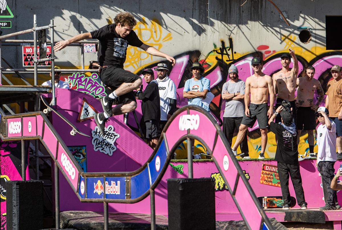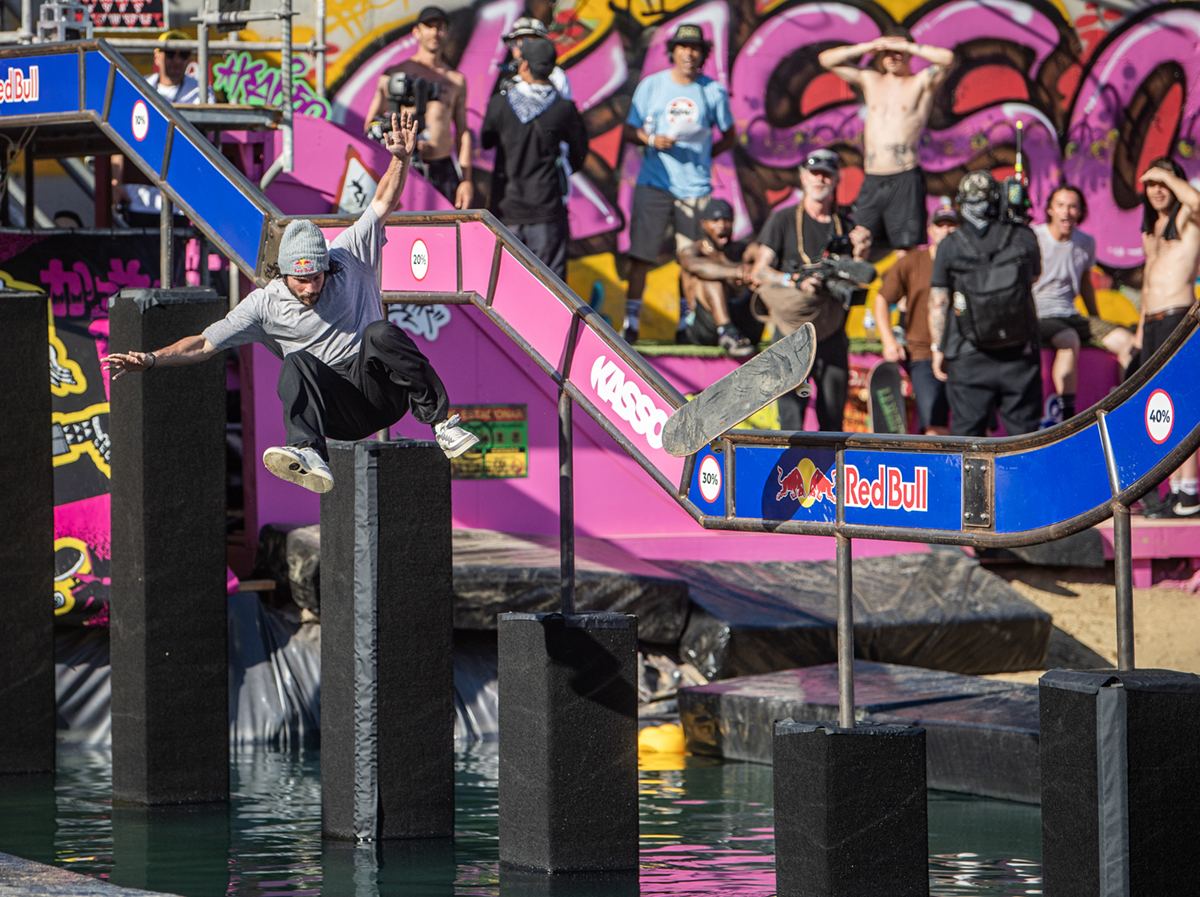 Taylor Kirby skates on the Long Beach Downhill course, one of three courses, on the first day of KASSO Fest in Long Beach, Saturday, March 21, 2026. Photo by Thomas R. Cordova.A skateboard is pulled out of the water at the Rail Rollercoaster course after a skater was unable to finish and fell in during KASSO Fest in Long Beach on Saturday, March 21, 2026. Photo by Thomas R. Cordova.Fans are seen reflected in the water at one of the skate courses during KASSO Fest in Long Beach on Saturday, March 21, 2026. Photo by Thomas R. Cordova.People watch and enjoy KASSO Fest from the other side of the fence in Long Beach on Saturday, March 21, 2026. Photo by Thomas R. Cordova.People enjoy KASSO Fest in Long Beach despite the hot weather on Saturday, March 21, 2026. Photo by Thomas R. Cordova.Kyle Walker takes on the Long Beach Downhill course, one of three courses at KASSO Fest in Long Beach on Saturday, March 21, 2026. Photo by Thomas R. Cordova.Torey Pudwill falls into the water after not completing the Rail Rollercoaster course on the first day of KASSO Fest in Long Beach, Saturday, March 21, 2026. Photo by Thomas R. Cordova.Skateboarders wait for their turn on the Rail Rollercoaster in Long Beach, Saturday, March 21, 2026. Photo by Thomas R. Cordova.Jamie Foy rides the rail on the Rail Rollercoaster course on the first day of KASSO Fest in Long Beach, Saturday, March 21, 2026. Photo by Thomas R. Cordova.Kyle Walker falls into the water after failing to complete the Rail Rollercoaster course in Long Beach, Saturday, March 21, 2026. Photo by Thomas R. Cordova.Aaron “Jaws” Homoki soars over the volcano feature on the Long Beach Downhill course. Photo by Thomas R. Cordova.Taylor Kirby bails as he can’t complete the Rail Rollercoaster course on the first day of KASSO Fest in Long Beach, Saturday, March 21, 2026. Photo by Thomas R. Cordova.Torey Pudwill loses his skateboard but manages to catch it on top of the volcano feature on the Long Beach Downhill course. Photo by Thomas R. Cordova.Skater Yurin Fujii signs a board for a young fan during KASSO Fest in Long Beach on Saturday, March 21, 2026. Photo by Thomas R. Cordova.Monica Torres, a pro skater, hosted and emceed KASSO Fest in Long Beach on Saturday, March 21, 2026. Photo by Thomas R. Cordova.A fan attends KASSO Fest in Long Beach on Saturday, March 21, 2026. Photo by Thomas R. Cordova.Skater Sora Negishi signs a board for a young fan at KASSO Fest in Long Beach on Saturday, March 21, 2026. Photo by Thomas R. Cordova.Sora Negishi catches air between jumps on the Long Beach Downhill course. Photo by Thomas R. Cordova.Kyle Walker successfully gets over the volcano on the Long Beach Downhill course, one of three courses at KASSO Fest in Long Beach on Saturday, March 21, 2026. Photo by Thomas R. Cordova.