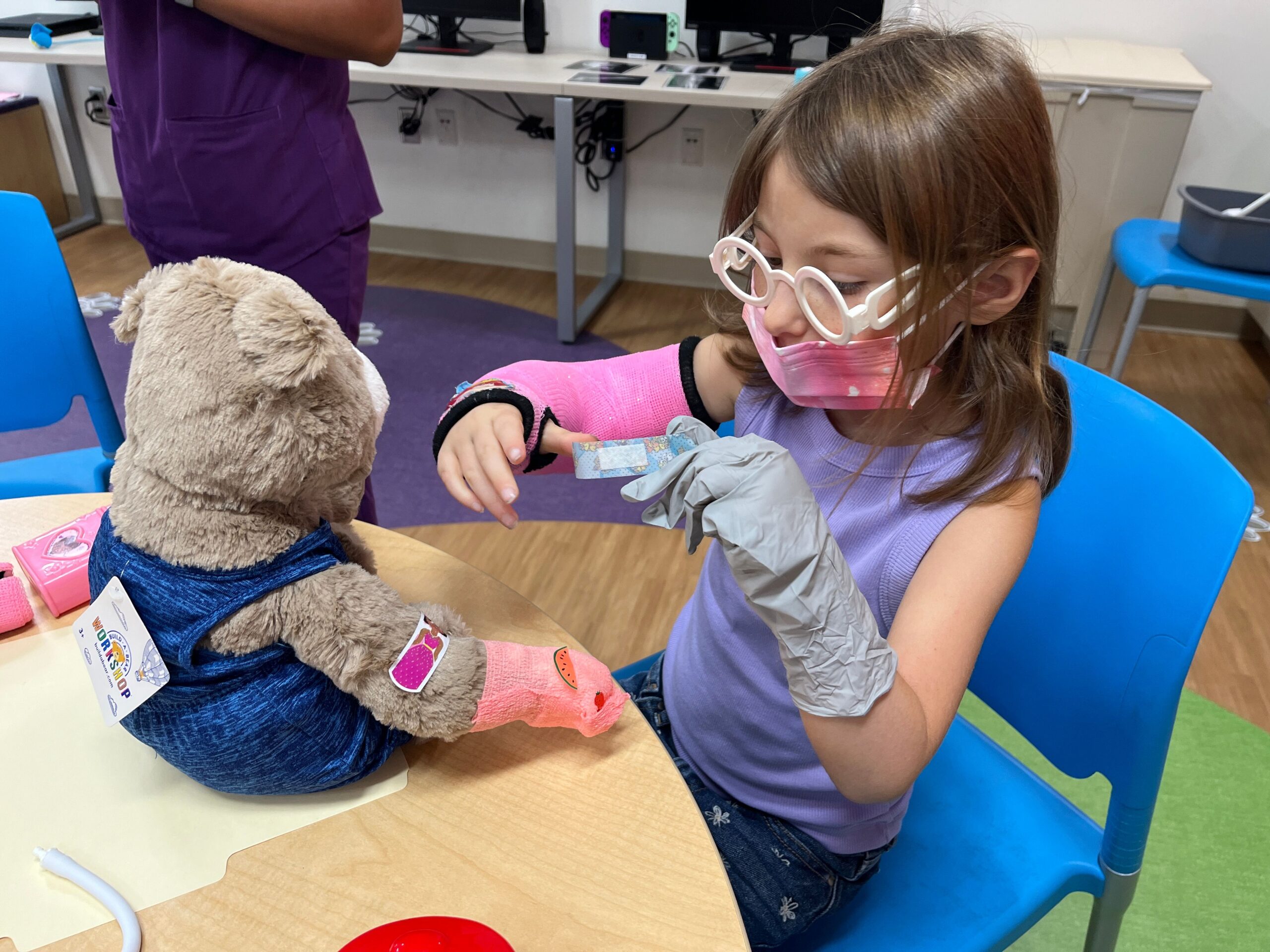 “Teddy Bear Clinics give children a sense of control and predictability in what can often be an unpredictable environment,” said Alyssa Agabon, child life specialist, Cherese Mari Laulhere Child Life Program. “It’s a powerful tool that helps normalize medical experiences and support emotional coping.We use a combination of play medical tools and real-life medical equipment to ensure patients become familiar and comfortable with their medical surroundings.”